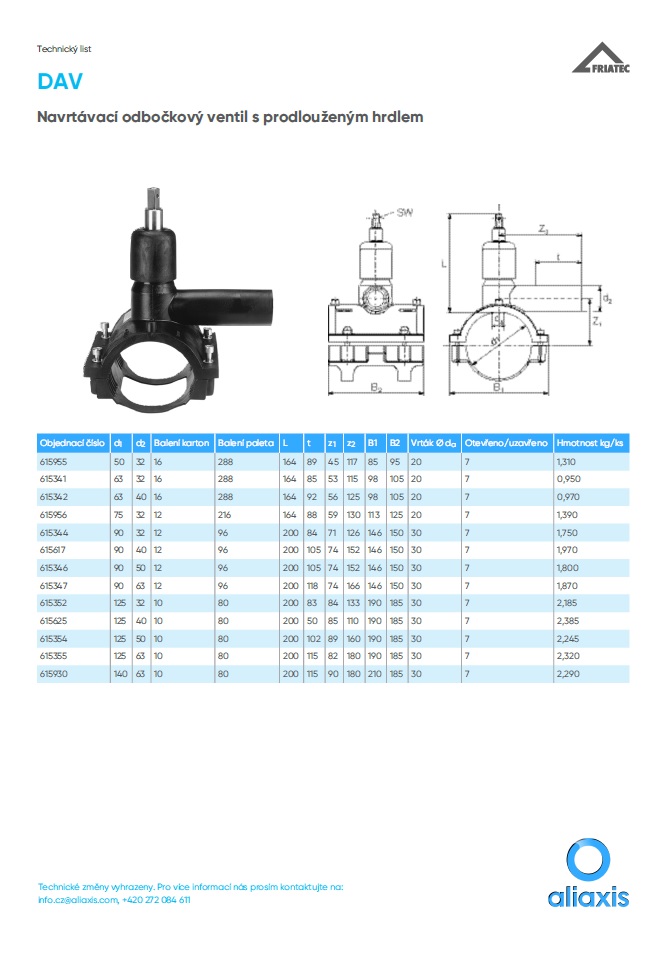 od Q2/2020 dimenze d 110 mm po vyprodání skladových zásob nahrazena novým typem DAV s upínacím mechanismem RedSnap